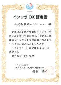 当社が近畿地方整備局よりインフラDX認定されました